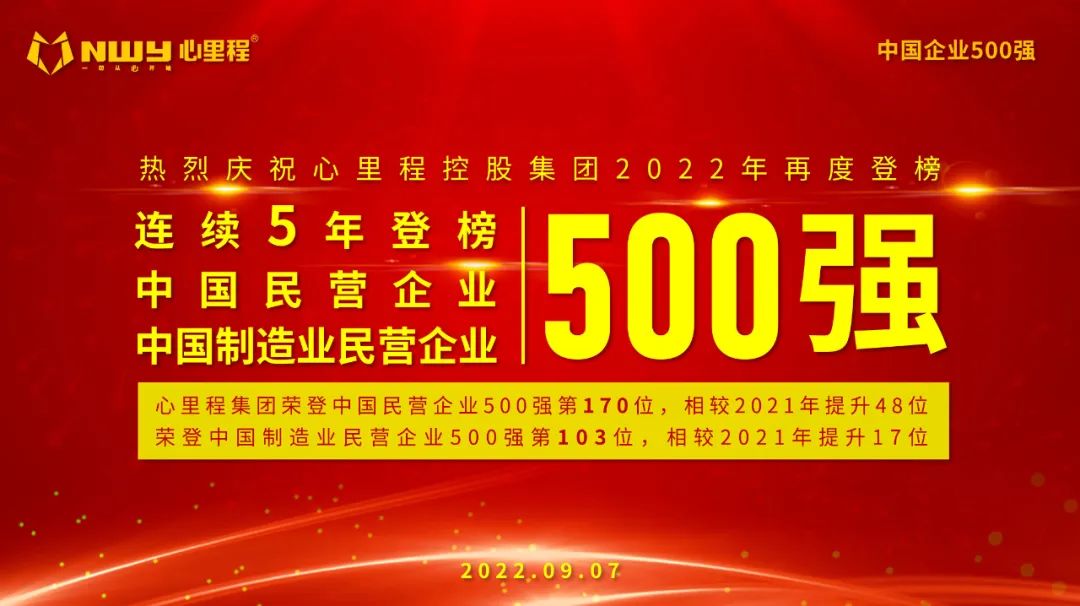 連續(xù)五年登榜中國(guó)民營(yíng)企業(yè)500 強(qiáng)!心里程集團(tuán)2022躍升48位!