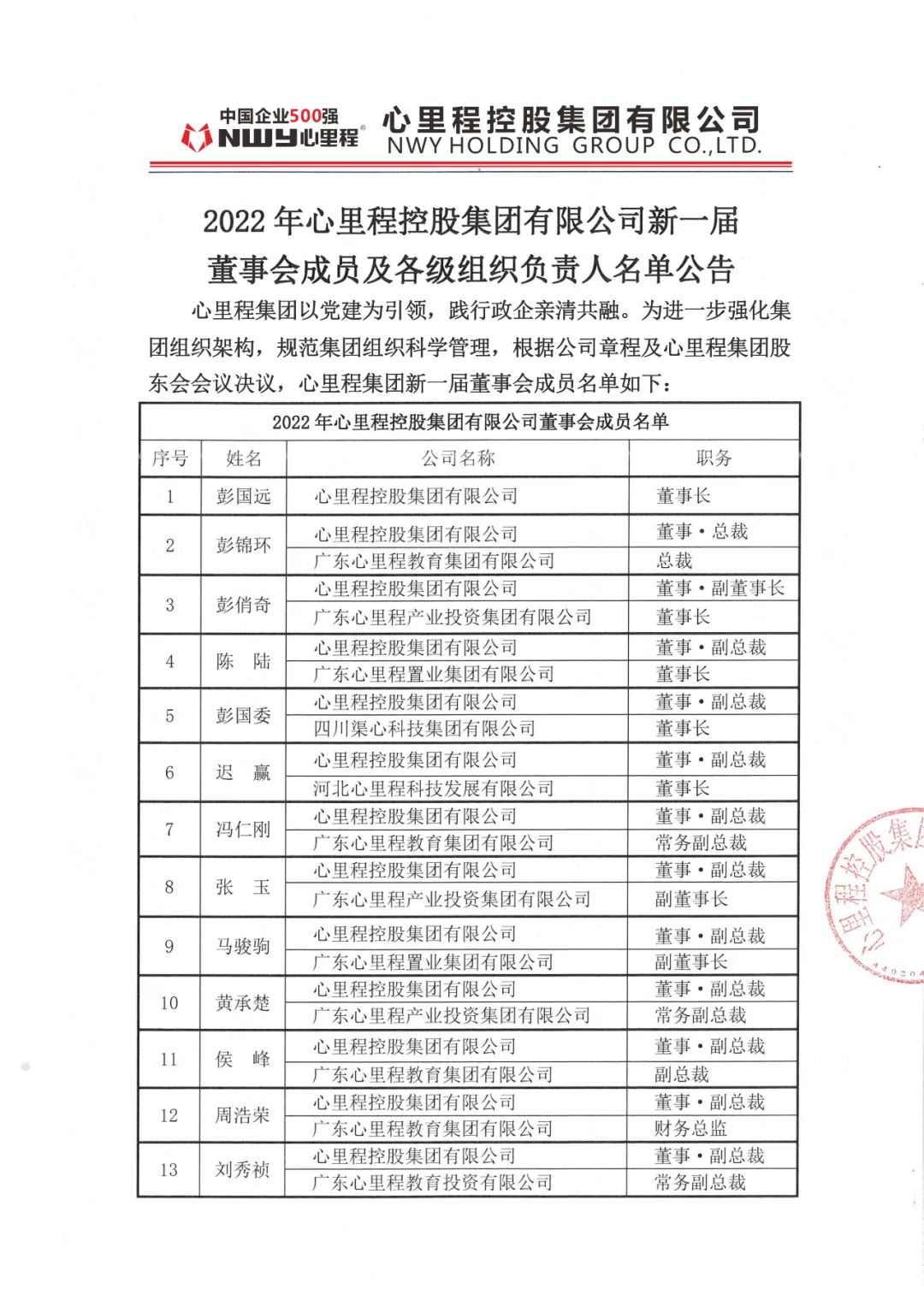 定了!心里程集團(tuán)公布新一屆董事會(huì)及各級(jí)組織負(fù)責(zé)人名單