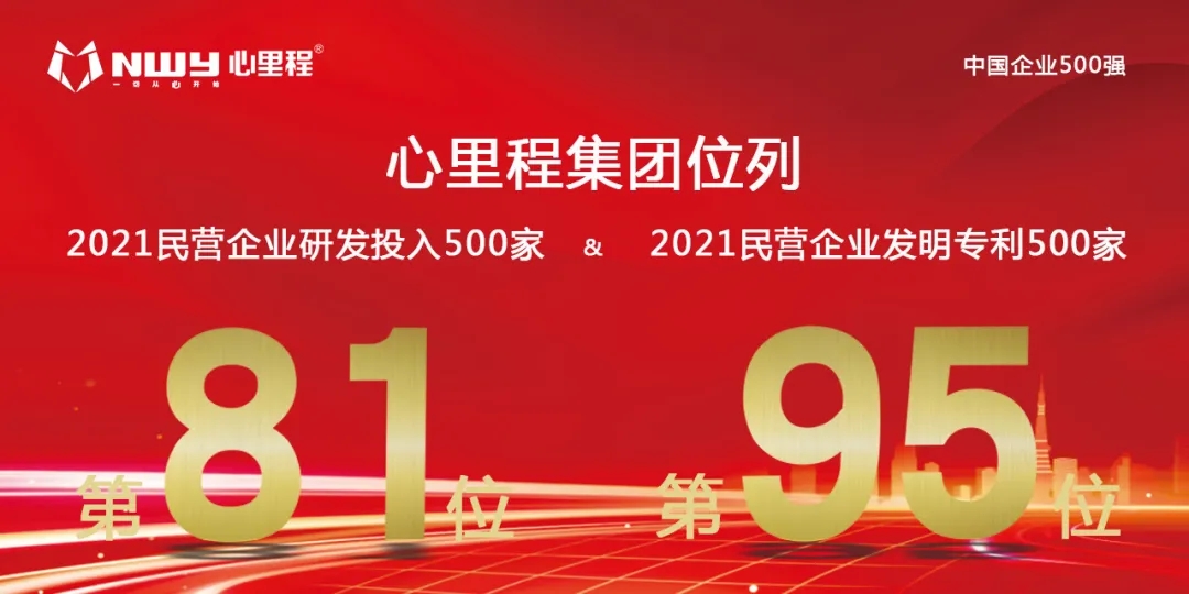 心里程集團榮登“2021民營企業(yè)研發(fā)投入500家”“2021民營企業(yè)發(fā)明專利500家”雙榜單