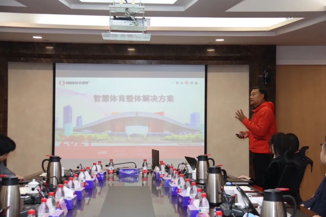 心里程教育集團(tuán)高級(jí)顧問、二級(jí)教授、深圳市教育裝備行業(yè)協(xié)會(huì)體育專委會(huì)主任劉晉在會(huì)上講解智慧體育整體解決方案