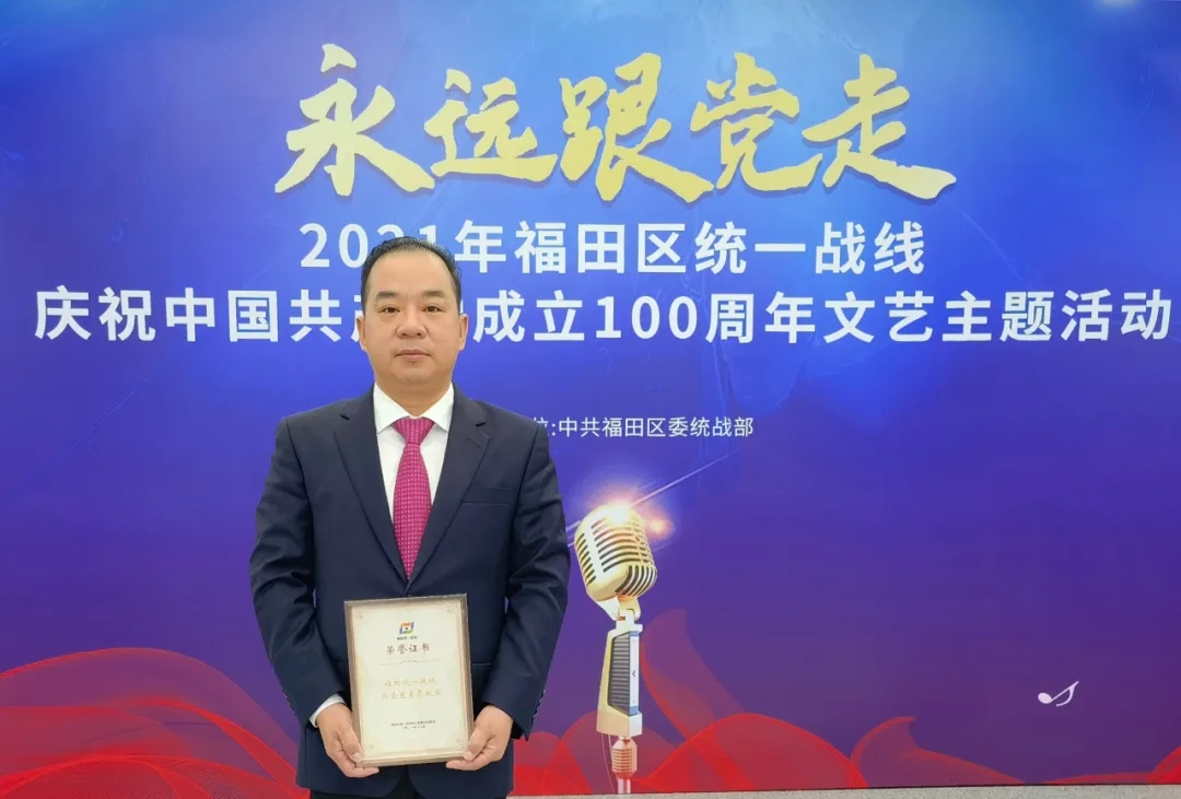此次活動適逢世界志愿日,現(xiàn)場對福田統(tǒng)一戰(zhàn)線在助力疫情防控和開展公益慈善方面涌現(xiàn)出來的相關單位進行了表彰,并頒發(fā)了“福田統(tǒng)一戰(zhàn)線公益慈善貢獻獎”。心里程集團因在助力脫貧攻堅、疫情防控、熱心公益事業(yè)等方面有突出的作為和擔當,榮獲該獎項,心里程置業(yè)集團董事長陳陸代表心里程控股集團總部出席活動并上臺領獎。