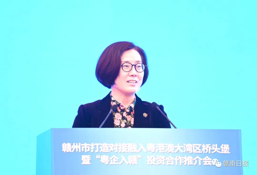 她表示,贛深高鐵的開(kāi)通,為贛州高質(zhì)量跨越式發(fā)展插上了騰飛的翅膀,也給在粵企業(yè)投資贛州提供了歷史機(jī)遇。熱忱歡迎各位企業(yè)家緊緊抓住贛州發(fā)展的“風(fēng)口”,搭乘高鐵快車走進(jìn)贛州、投資贛州,攜手書(shū)寫(xiě)更多粵企入贛“春天的故事”。衷心期盼各界朋友、各位鄉(xiāng)賢一如既往關(guān)心支持贛南老區(qū)振興發(fā)展,多牽線搭橋,多宣傳推介,為老區(qū)人民過(guò)上富裕幸福生活貢獻(xiàn)智慧力量,老區(qū)人民歡迎大家常來(lái)做客、常回家看看。