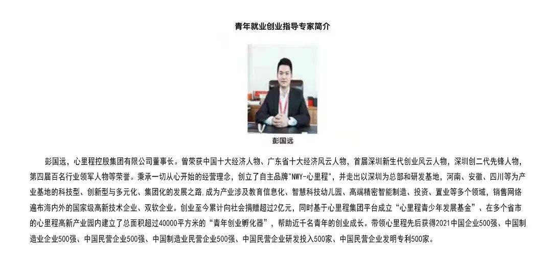 彭國(guó)遠(yuǎn)董事長(zhǎng)于2007年開(kāi)始回國(guó)創(chuàng)業(yè),在上海注冊(cè)第一家公司,自留學(xué)歸國(guó)創(chuàng)業(yè)至今已有15年,擁有豐富的創(chuàng)業(yè)經(jīng)驗(yàn)與閱歷,成熟穩(wěn)定的創(chuàng)業(yè)思維。早在2020年的時(shí)候就被聘為“全國(guó)人才流動(dòng)中心高校畢業(yè)生就業(yè)創(chuàng)業(yè)指導(dǎo)專家”,并且曾應(yīng)邀參加人社部就業(yè)促進(jìn)司、全國(guó)人才流動(dòng)中心和青海省人社廳聯(lián)合在青海民族大學(xué)舉辦高校畢業(yè)生就業(yè)創(chuàng)業(yè)指導(dǎo)進(jìn)校園活動(dòng),為廣大畢業(yè)生作題為《在新時(shí)代創(chuàng)業(yè),需要注意什么》的專題講座;受邀到香港理工大學(xué)參加“創(chuàng)新、創(chuàng)業(yè)、創(chuàng)未來(lái)”交流會(huì),與廣大師生分享自己創(chuàng)業(yè)以來(lái)的心路歷程及經(jīng)驗(yàn)。