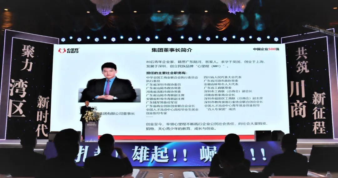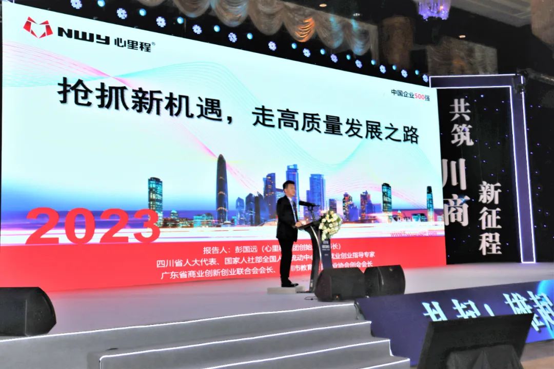 四川&廣東兩地領(lǐng)導、在深川籍老領(lǐng)導、商協(xié)會會長、知名企業(yè)家、學術(shù)界領(lǐng)袖、教育界名人等嘉賓共500余人出席會議。四川省人大代表、廣東省商業(yè)創(chuàng)新創(chuàng)業(yè)聯(lián)合會會長、心里程集團創(chuàng)始人·董事長彭國遠應(yīng)邀出席活動,并作《抓住新機遇,走高質(zhì)量發(fā)展之路》的主旨演講。