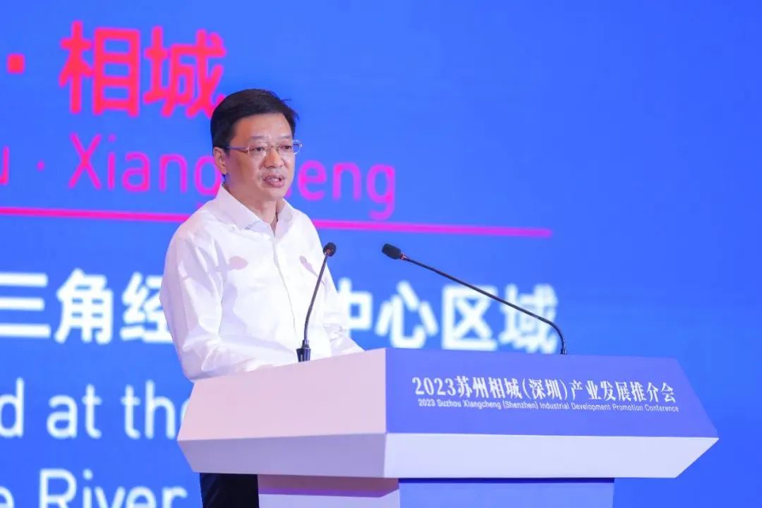 相城區(qū)委書記沈志棟在致辭中表示,深圳作為中國改革開放的一面旗幟、粵港澳大灣區(qū)發(fā)展的核心引擎, -直是走在時(shí)代前沿、引領(lǐng)高質(zhì)量發(fā)展的標(biāo)桿示范,也是我們對(duì)標(biāo)學(xué)習(xí)的好榜樣。相城始終注重加強(qiáng)與深圳各界的交流合作,今天,我們?cè)诖伺e辦活動(dòng),共同見證一系列項(xiàng)目簽約和一批龍頭企業(yè)“加盟”, 不僅零距離感受到了深圳撲面而來的創(chuàng)新氣息和創(chuàng)造活力,也更加堅(jiān)定了相城與各位朋友牽手結(jié)緣、共謀未來的信心,相信我們一定會(huì)成為彼此最優(yōu)的選擇,也必將收獲共享共贏的豐碩成果。從深圳到蘇州,是夢(mèng)想的奔赴,也是注定的緣分。我們經(jīng)常說,相城是一個(gè)樂于“成人之美”、期待“相互成就”的地方,真摯期待各位領(lǐng)導(dǎo)、優(yōu)秀企業(yè)家和各界精英多到相城走一走、看一看,在這里實(shí)地考察、投資興業(yè)。我們將竭誠提供精準(zhǔn)有力的政策支持、高效便捷的營商服務(wù),為廣大客商在相城發(fā)展創(chuàng)造優(yōu)質(zhì)條件,為各類項(xiàng)目在相城成長壯大提供堅(jiān)實(shí)保障,也衷心期盼與更多優(yōu)秀朋友攜起手來,共同書寫更多“各美其美、美美與共”的嶄新故事。