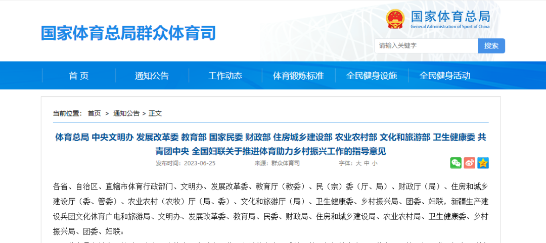 近日,國家體育總局等十二部委印發(fā)了《關(guān)于推進體育助力鄉(xiāng)村振興工作的指導意見》(以下簡稱《意見》),協(xié)力推進體育助力鄉(xiāng)村振興工作。