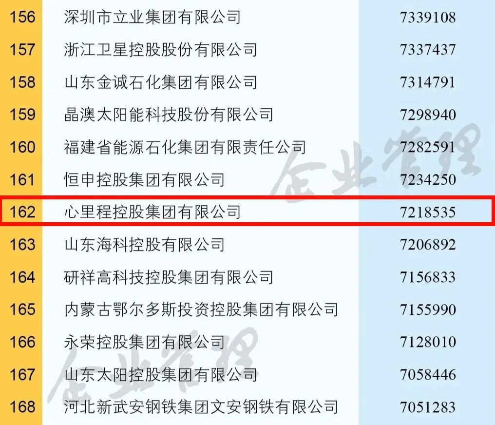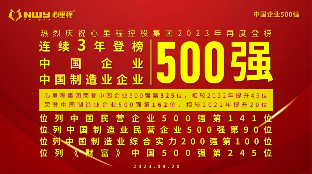心里程集團榮登“2023中國制造業(yè)企業(yè)500強” 榜單第162位