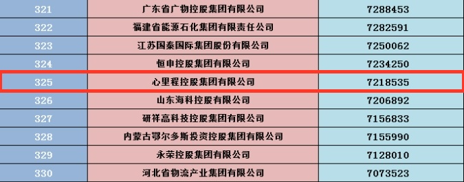 心里程集團榮登“2023中國企業(yè)500強”榜單第325位
