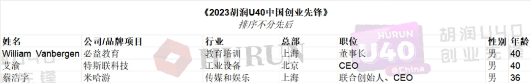 2023胡潤(rùn)U40中國(guó)創(chuàng)業(yè)先鋒