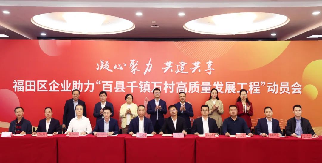 12月1日,福田區(qū)在全市率先召開(kāi)企業(yè)助力“百千萬(wàn)工程”動(dòng)員會(huì),廣泛調(diào)動(dòng)各類企業(yè)等市場(chǎng)主體深度參與“百千萬(wàn)工程”,為全省、全市在縣區(qū)級(jí)引導(dǎo)鼓勵(lì)企業(yè)助力“百千萬(wàn)工程”作出先行探索。福田區(qū)委書(shū)記黃偉等領(lǐng)導(dǎo),區(qū)紀(jì)委監(jiān)委,區(qū)委區(qū)府辦、組織部、宣傳部、統(tǒng)戰(zhàn)部、政法委,區(qū)“百千萬(wàn)工程”指揮辦負(fù)責(zé)同志,區(qū)人大辦、政協(xié)辦、區(qū)委編辦,區(qū)發(fā)改局、教育局、科創(chuàng)局、工信局、民政局、司法局、財(cái)政局、人力資源局、住建局、水務(wù)局、文廣旅體局、衛(wèi)健局、應(yīng)急局、統(tǒng)計(jì)局、金融局、城管和綜合執(zhí)法局、政務(wù)服務(wù)數(shù)據(jù)管理局、城市更新和土地整備局、機(jī)關(guān)事務(wù)局,發(fā)展研究中心、投資推廣和企業(yè)服務(wù)中心、建工署,區(qū)總工會(huì)、團(tuán)區(qū)委、區(qū)婦聯(lián)、工商聯(lián),各街道黨工委,市規(guī)自局福田局、市生態(tài)局福田局、市交通局福田局、市市場(chǎng)監(jiān)管局福田局、福田區(qū)稅務(wù)局主要負(fù)責(zé)同志,河套合作區(qū)建設(shè)發(fā)展事務(wù)署、香蜜湖片區(qū)建設(shè)發(fā)展事務(wù)中心、活力城區(qū)建設(shè)事務(wù)中心負(fù)責(zé)同志及各企業(yè)代表出席動(dòng)員會(huì),廣東心里程置業(yè)集團(tuán)有限公司董事長(zhǎng)陳陸代表心里程集團(tuán)出席活動(dòng)并簽約。
