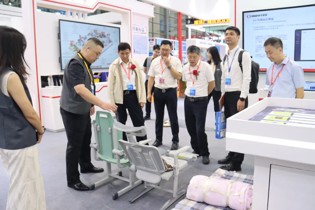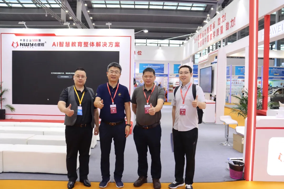四川省教育裝備行業(yè)協(xié)會(huì)會(huì)長張林祥(左三)蒞臨心里程展位參觀指導(dǎo)