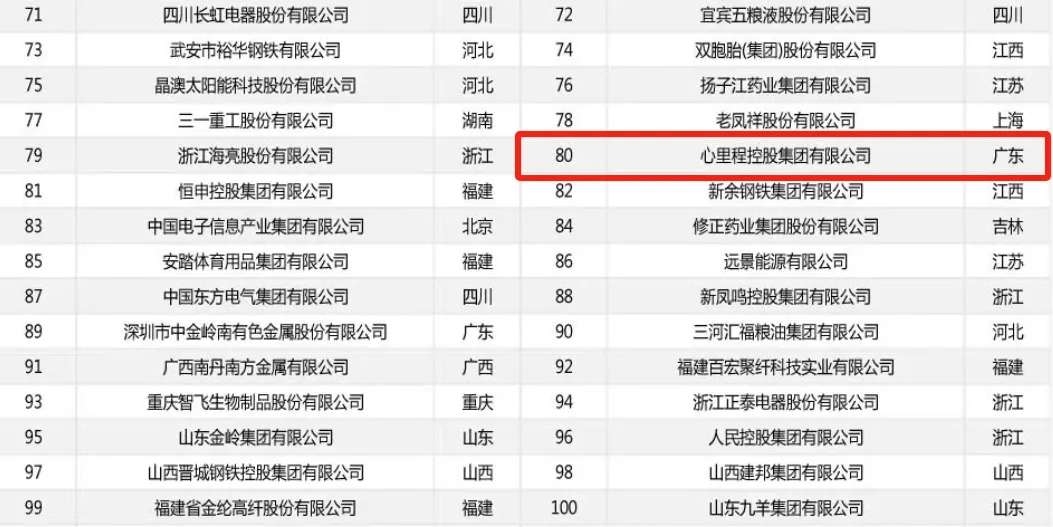 這段時(shí)間,心里程集團(tuán)在多個(gè)重量級(jí)榜單中脫穎而出,比如榮登2024中國企業(yè)500強(qiáng)榜單第321位;2024民營企業(yè)研發(fā)投入500家第60位;2024中國民營企業(yè)500強(qiáng)第138位;2024中國制造業(yè)民營企業(yè)500強(qiáng)第92位;2024民營企業(yè)發(fā)明專利500家第133位;2024年《財(cái)富》中國500強(qiáng)榜單第251位;2024廣東企業(yè)500強(qiáng)第48位;2024廣東民營企業(yè)100強(qiáng)第19位;2024廣東制造業(yè)企業(yè)100強(qiáng)第20位;2024深圳500強(qiáng)企業(yè)第 24 位。