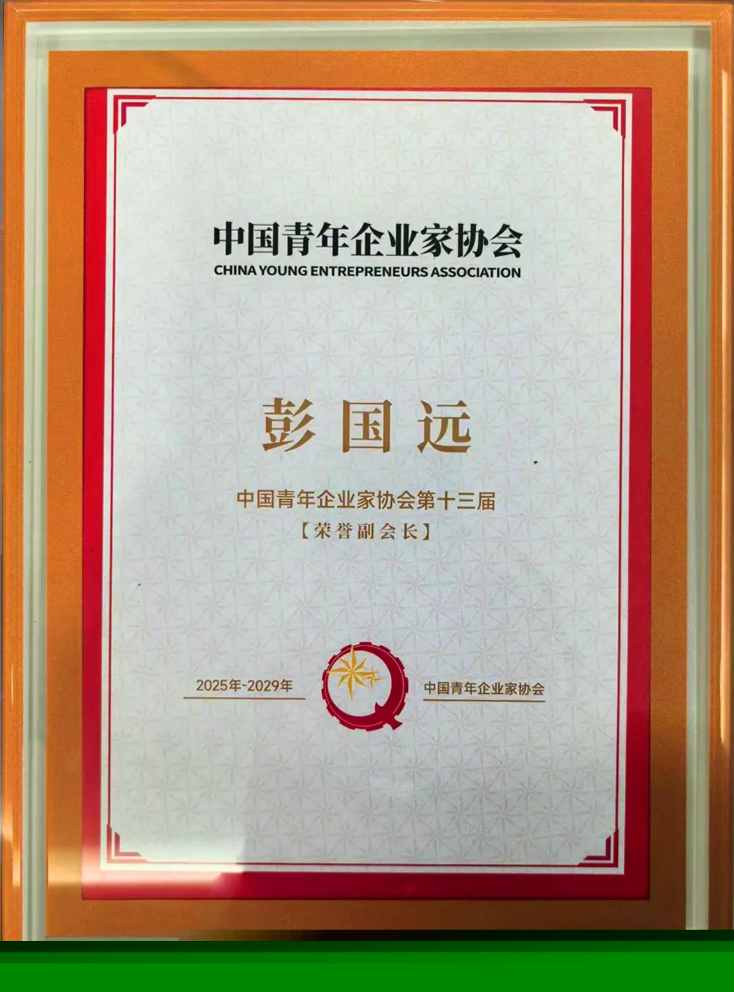 彭國(guó)遠(yuǎn)董事長(zhǎng)于中國(guó)青年企業(yè)家協(xié)會(huì)第十三屆常務(wù)理事會(huì)第二次會(huì)議當(dāng)選榮譽(yù)副會(huì)長(zhǎng)
