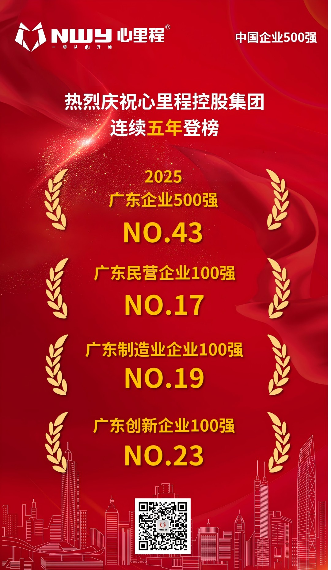 心里程集團榮登“2025廣東企業(yè)500強”榜單第43位
