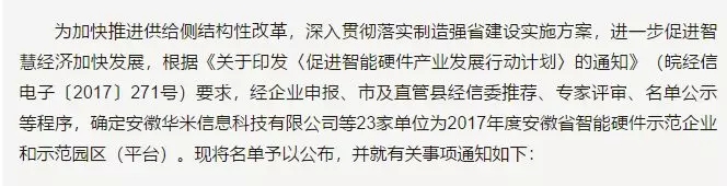 根據(jù)安徽省人民政府發(fā)布的最新消息,心里程控股集團(tuán)有限公司旗下控股子公司——安徽心里程科技有限公司,躋身2017年度安徽省智能硬件示范企業(yè)!