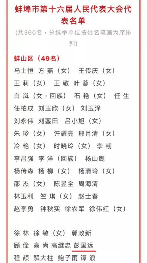 1月5日,安徽省蚌埠市第十六屆人民代表大會第一次會議隆重開幕,心里程控股集團董事長彭國遠作為新當選的人大代表,出席會議。