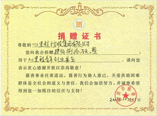 3月30日,心里程控股集團接收到了深圳慈善會開具的捐贈發(fā)票及其頒發(fā)的捐贈證書。