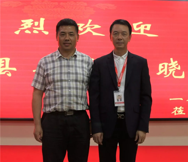 富曉明縣長(zhǎng)(左)與彭錦環(huán)總裁合影