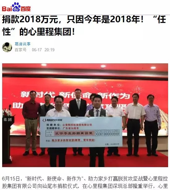 捐款2018萬元,“任性”的心里程集團頻頻上頭條