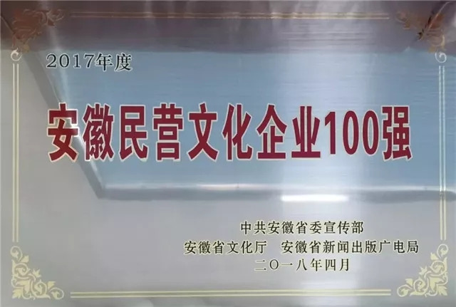 ?2017年,安徽心里程科技有限公司成功入選“2017年度安徽民營文化企業(yè)100強(qiáng)”。