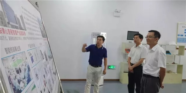 ?2018年6月,安徽省蚌埠市副市長張曉靜、市政協(xié)副主席鮑子雨一行率隊(duì)到安徽心里程科技有限公司暨安徽心里程智慧產(chǎn)業(yè)園考察調(diào)研。