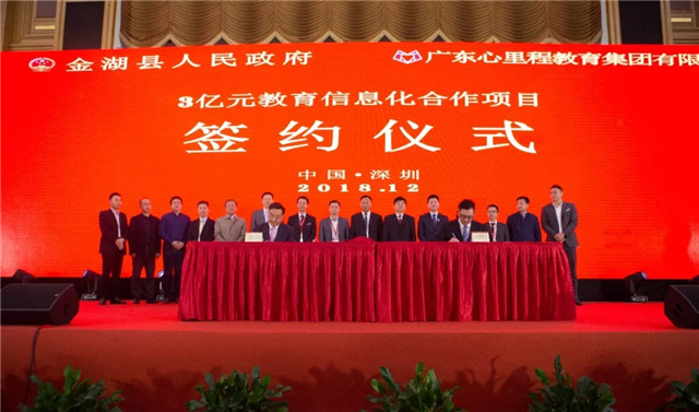 期間,江蘇省淮安市金湖縣人民政府與深圳市教育裝備行業(yè)協(xié)會、心里程集團(tuán)分別就智慧教育小鎮(zhèn)項(xiàng)目、教育信息化項(xiàng)目舉行了隆重的戰(zhàn)略合作項(xiàng)目簽約儀式。金湖縣政府將與深圳市教育裝備行業(yè)協(xié)會、心里程集團(tuán)合力打造智慧教育小鎮(zhèn),并與心里程集團(tuán)簽訂3億元教育信息化訂單。