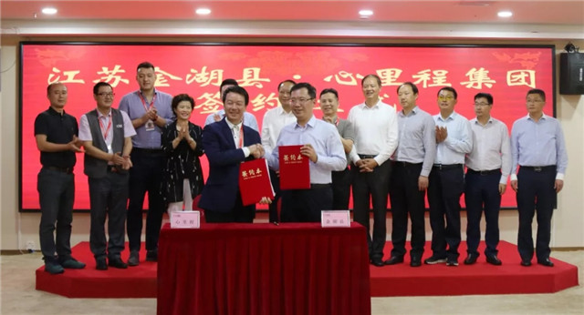 2015年8月,心里程集團(tuán)總裁彭錦環(huán)與時(shí)任金湖縣縣長(zhǎng)、縣委副書記,現(xiàn)任金湖縣委書記張志勇分別代表雙方就相關(guān)合作項(xiàng)目簽署戰(zhàn)略合作協(xié)議。