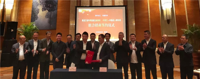 會(huì)上,省商務(wù)廳的領(lǐng)導(dǎo)與彭國(guó)遠(yuǎn)董事長(zhǎng)等企業(yè)家鑒證了黑龍江省外來(lái)投資企業(yè)協(xié)會(huì)與中樂(lè)匯——中國(guó)名人俱樂(lè)部的聯(lián)合招商簽約儀式。