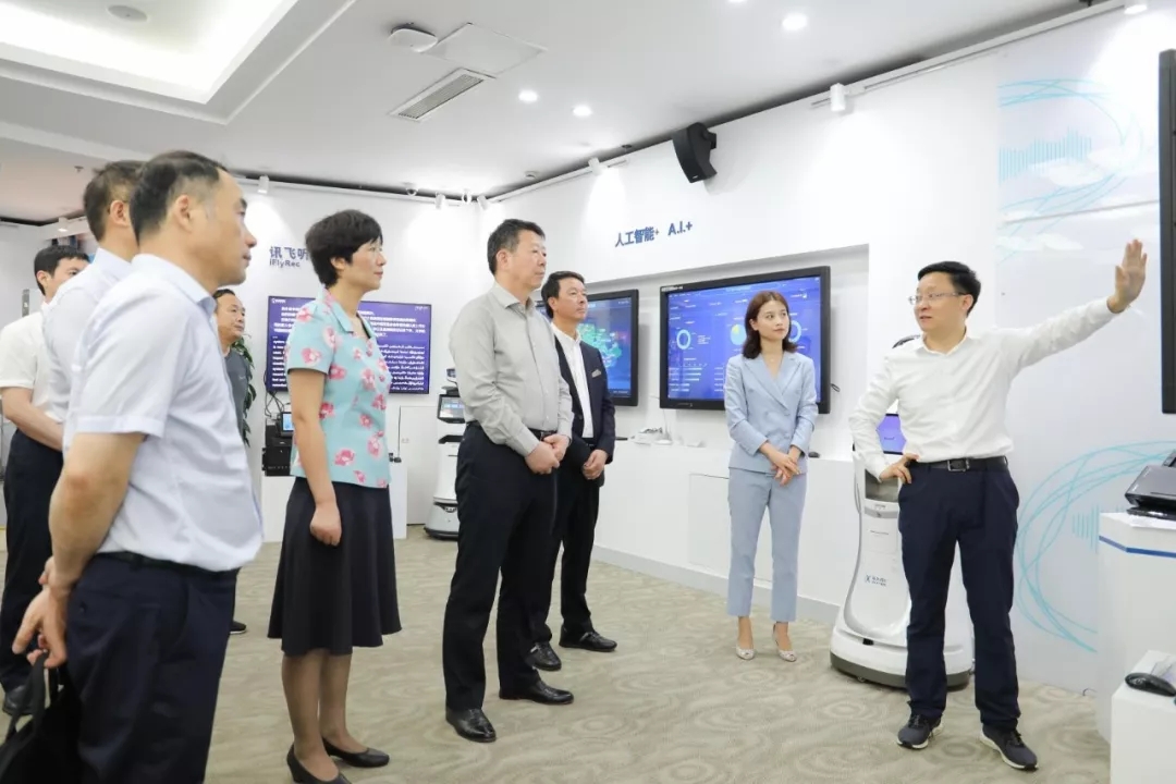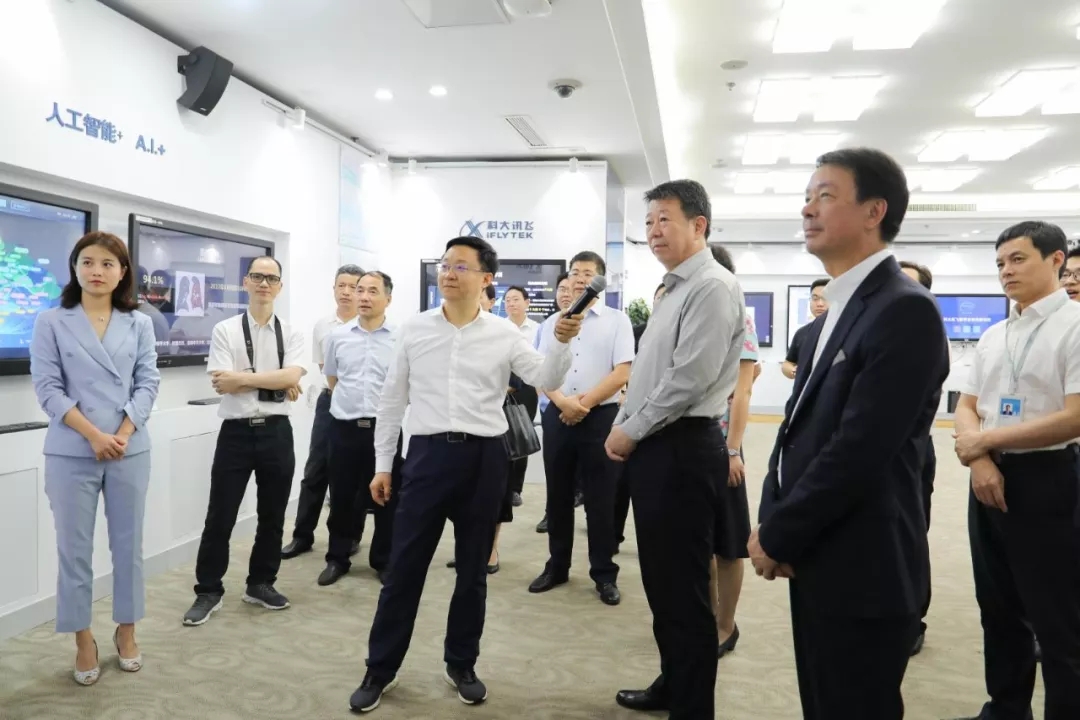 彭錦環(huán)總裁與王誠(chéng)市長(zhǎng)一行領(lǐng)導(dǎo)參觀科大訊飛人工智能展廳