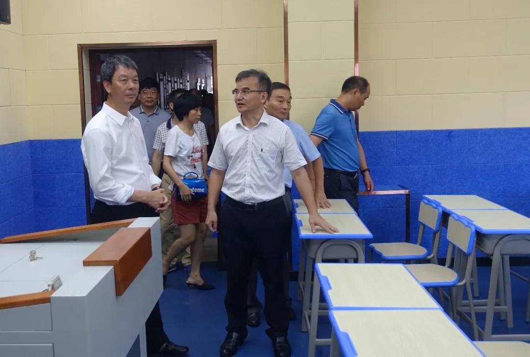 南城縣副縣長劉凱(前排左一)陪同彭錦環(huán)總裁(前排左二)考察南城縣實驗中學(xué)