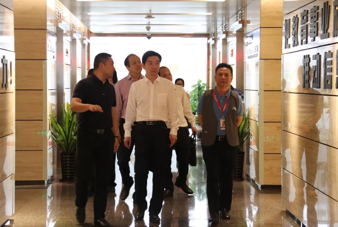 心里程投資集團董事長彭俏奇(右)、常務副總裁張玉(左)等領導陪同廣西貴港市副市長韋彥(中)參觀集團