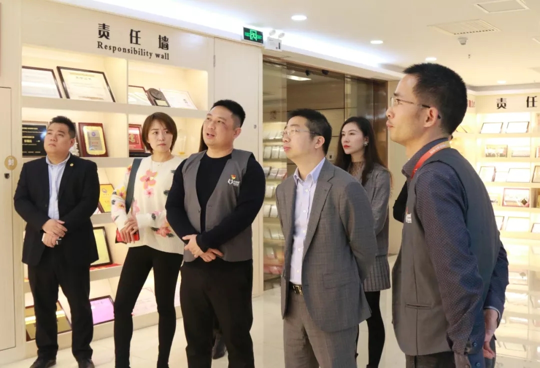 心里程投資集團(tuán)馬駿駒副總裁(左三)陪同黃仕坤會(huì)長(zhǎng)(右二)一行參觀集團(tuán)