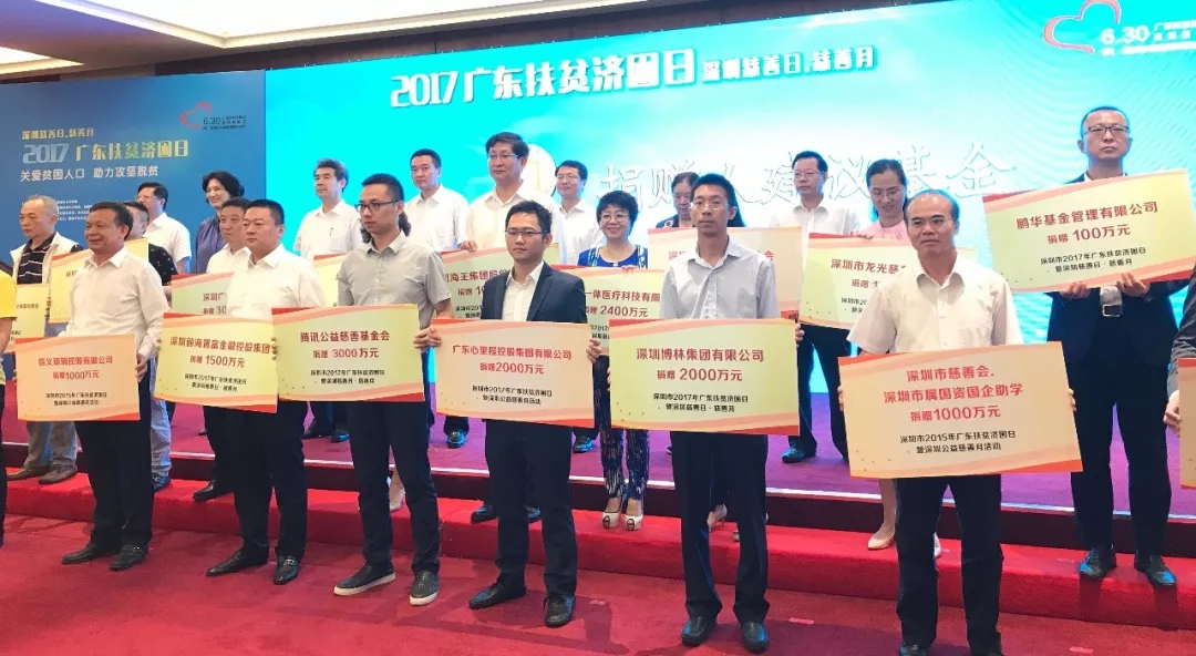 ●2017年6月30日,“廣東扶貧濟(jì)困日”暨“深圳慈善日慈善月”活動(dòng)在市民中心多功能廳舉行了啟動(dòng)儀式,心里程集團(tuán)捐資2000萬元扶貧濟(jì)困。