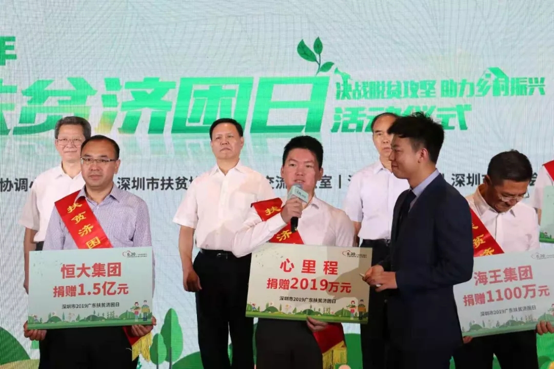 2019年6月30日,以“決戰(zhàn)脫貧攻堅(jiān),助力鄉(xiāng)村振興”為主題的深圳市2019年“廣東扶貧濟(jì)困日”活動(dòng)在深圳市民中心隆重舉行,心里程控股集團(tuán)董事長彭國遠(yuǎn)應(yīng)邀出席啟動(dòng)儀式,并現(xiàn)場舉牌認(rèn)捐善款2019萬元。