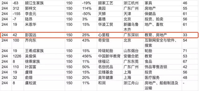 ●10月10日,胡潤研究院今日攜手LEXUS雷克薩斯,聯(lián)合發(fā)布《2019 LEXUS雷克薩斯 · 胡潤百富榜》(2019 LEXUS · Hurun China Rich List)。今年是胡潤研究院自1999年以來連續(xù)第21次發(fā)布“胡潤百富榜”,上榜門檻連續(xù)第七年保持20億元。上榜企業(yè)家財(cái)富計(jì)算的截止日期為今年8月15日。今年共有1819位企業(yè)家財(cái)富超過20億,心里程控股集團(tuán)董事長彭國遠(yuǎn)以150億元財(cái)富榮登百富榜第244位,較2018年上升42位。