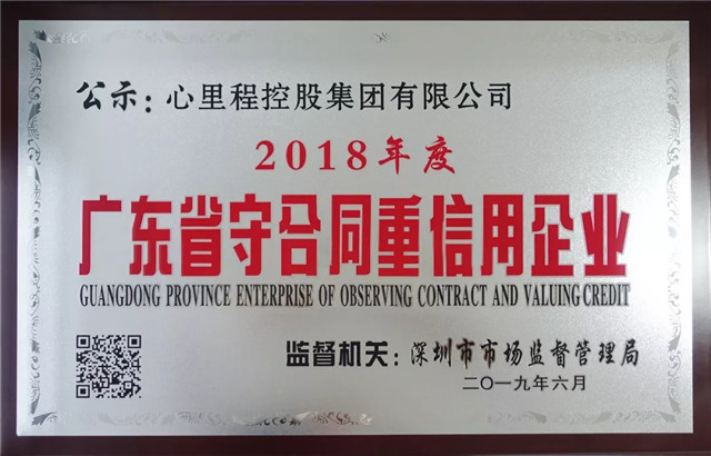 ●6月1日,廣東省市場(chǎng)監(jiān)督管理局對(duì)“2018年度守合同重信用企業(yè)”進(jìn)行了公示,心里程控股集團(tuán)以自身良好的信用體系及誠實(shí)守信的企業(yè)形象,榮獲“2018年度廣東省守合同重信用企業(yè)”稱號(hào)。