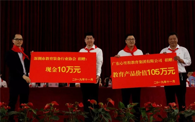 ●11月15日,心里程集團(tuán)攜手深圳市教育裝備行業(yè)協(xié)會(huì),聯(lián)合其他11家深圳愛心企業(yè)深入河源市中小學(xué)校開展主題為“精準(zhǔn)扶貧,助教扶智”的支持教育捐贈(zèng)活動(dòng),共計(jì)向河源市中小學(xué)校捐贈(zèng)價(jià)值312萬元的教學(xué)設(shè)備(其中心里程集團(tuán)捐贈(zèng)教育產(chǎn)品價(jià)值105萬元)。捐贈(zèng)儀式在東源縣崇文學(xué)校舉行。