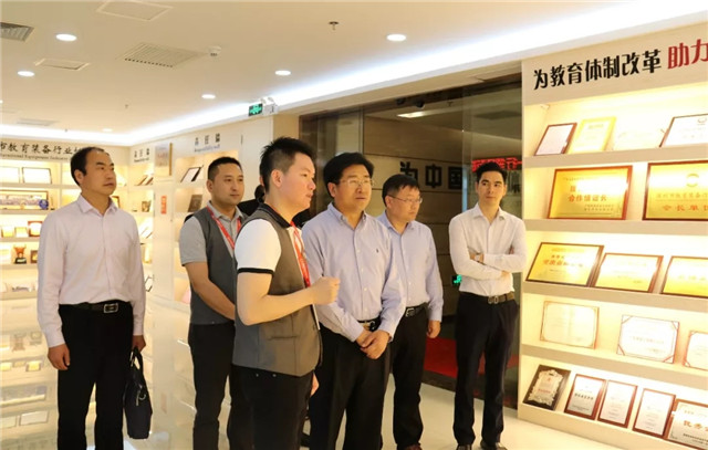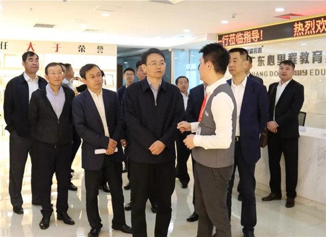 ●9月20日,2019深圳市教育裝備博覽會(huì)期間,肇慶市端州區(qū)委書記劉慶良率隊(duì)蒞臨心里程集團(tuán)展位參觀指導(dǎo),并深入心里程集團(tuán)總部考察座談。
