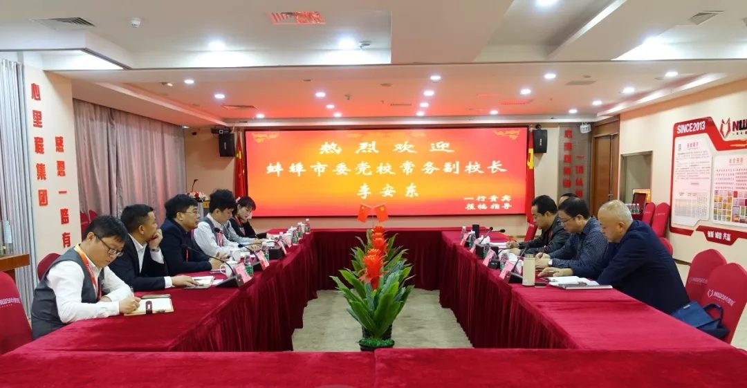 1月13日,中共蚌埠市委黨校常務(wù)副校長李安東、副校長劉善權(quán)等領(lǐng)導(dǎo)深入心里程集團(tuán)總部調(diào)研交流。心里程集團(tuán)黨組書記、副總裁彭國委,廣東心里程投資集團(tuán)總裁梁自全等熱情接待了中共蚌埠市委黨校校領(lǐng)導(dǎo)一行。雙方圍繞教育裝備、智慧校園建設(shè)等話題進(jìn)行了深入的座談探討。