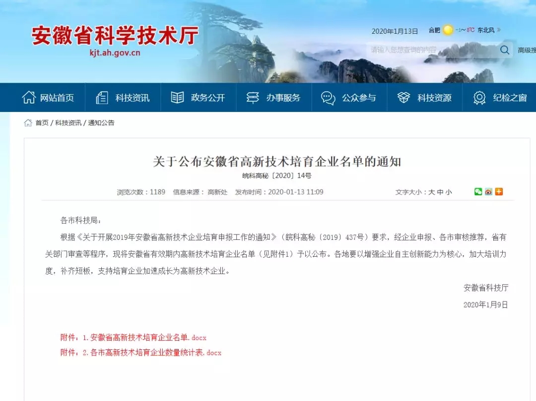 近日,安徽省科技廳公布了2019年度安徽省高新技術培育企業(yè)名單。據(jù)安徽省科技廳官網(wǎng)消息,2019年度安徽省高新技術培育企業(yè)經過過了企業(yè)申報、各市審核推薦,省有關部門審查等程序,全省16個市共有1417家企業(yè)上榜。心里程控股集團旗下兩家子公司——安徽心里程科技有限公司、蚌埠心里程電子科技有限公司位列其中,這是心里程集團在安徽投資發(fā)展史上的又一喜事和盛事。
