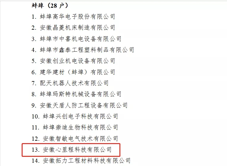 2019年安徽省新認定安徽心里程等500戶企業(yè)為“專精特新”中小企業(yè)