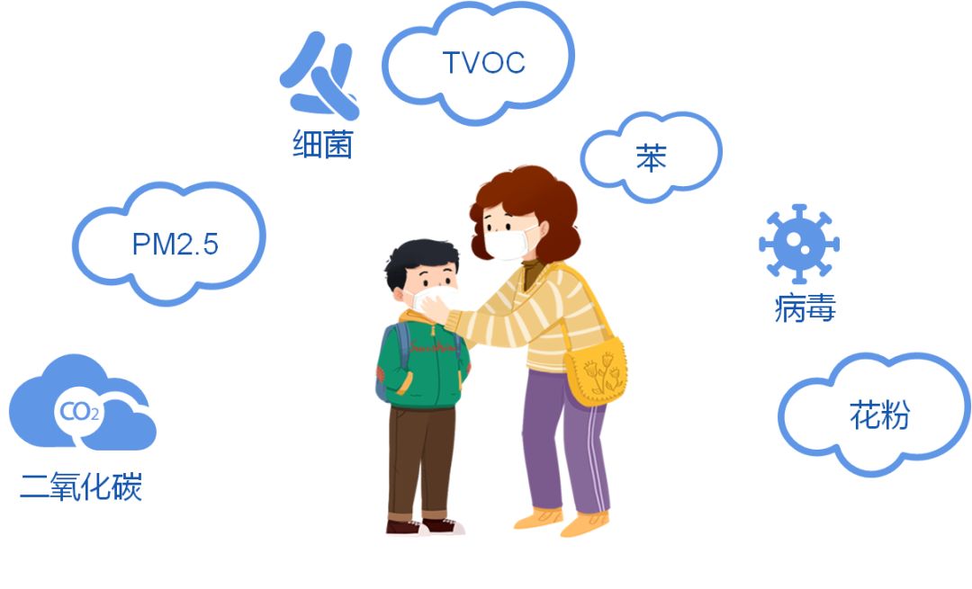 空氣中包含二氧化碳、甲醛、細(xì)菌、病毒、粉塵顆粒等大量有害物質(zhì)影響師生的身心健康