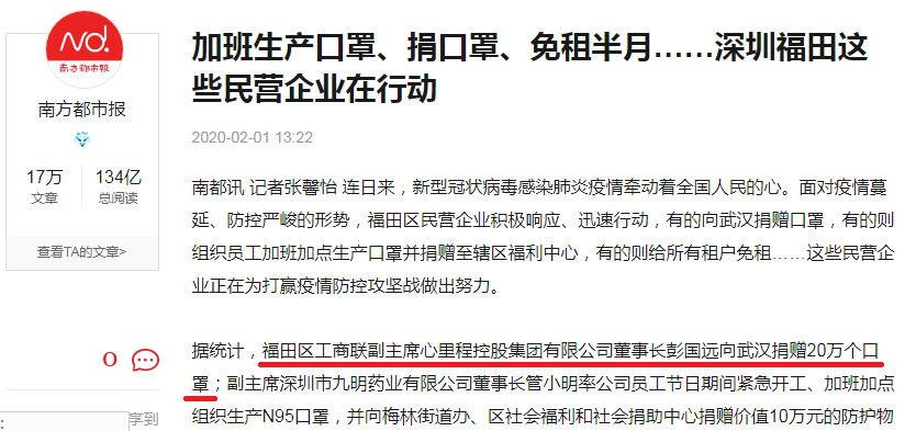 心里程一直堅(jiān)持以“打造負(fù)責(zé)任社會(huì)企業(yè)” 為企業(yè)目標(biāo),在董事長彭國遠(yuǎn)的帶領(lǐng)下,積極參與各項(xiàng)慈善公益活動(dòng),回饋社會(huì)。近年來,累計(jì)向社會(huì)捐資近2億元。此次的捐贈(zèng)活動(dòng),是心里程繼月初向武漢、深圳、肇慶、汕尾等全國多個(gè)城市地區(qū)捐贈(zèng)近50萬件醫(yī)用物品后的又一善舉。