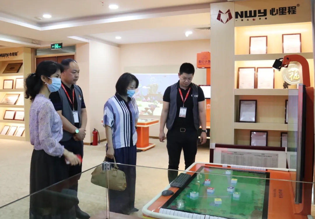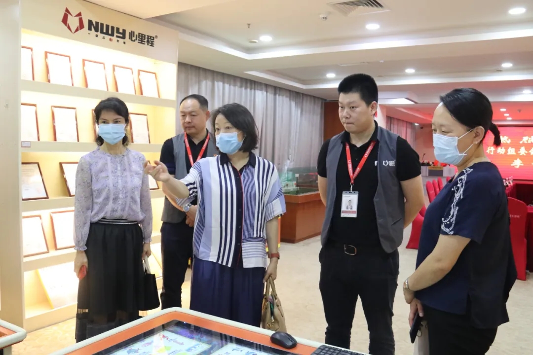 市關(guān)愛辦專職副主任李青松(右三)一行領(lǐng)導(dǎo)參觀心里程產(chǎn)品