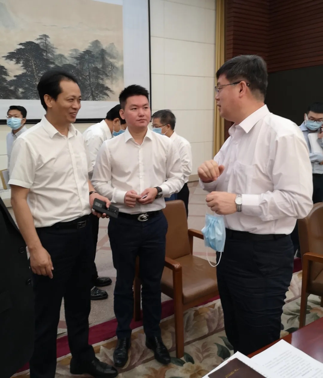 彭國遠董事長(中)與覃偉中副省長(右)等領(lǐng)導(dǎo)交流